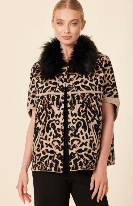KNIT WRAP WITH FAUX FUR COLLAR