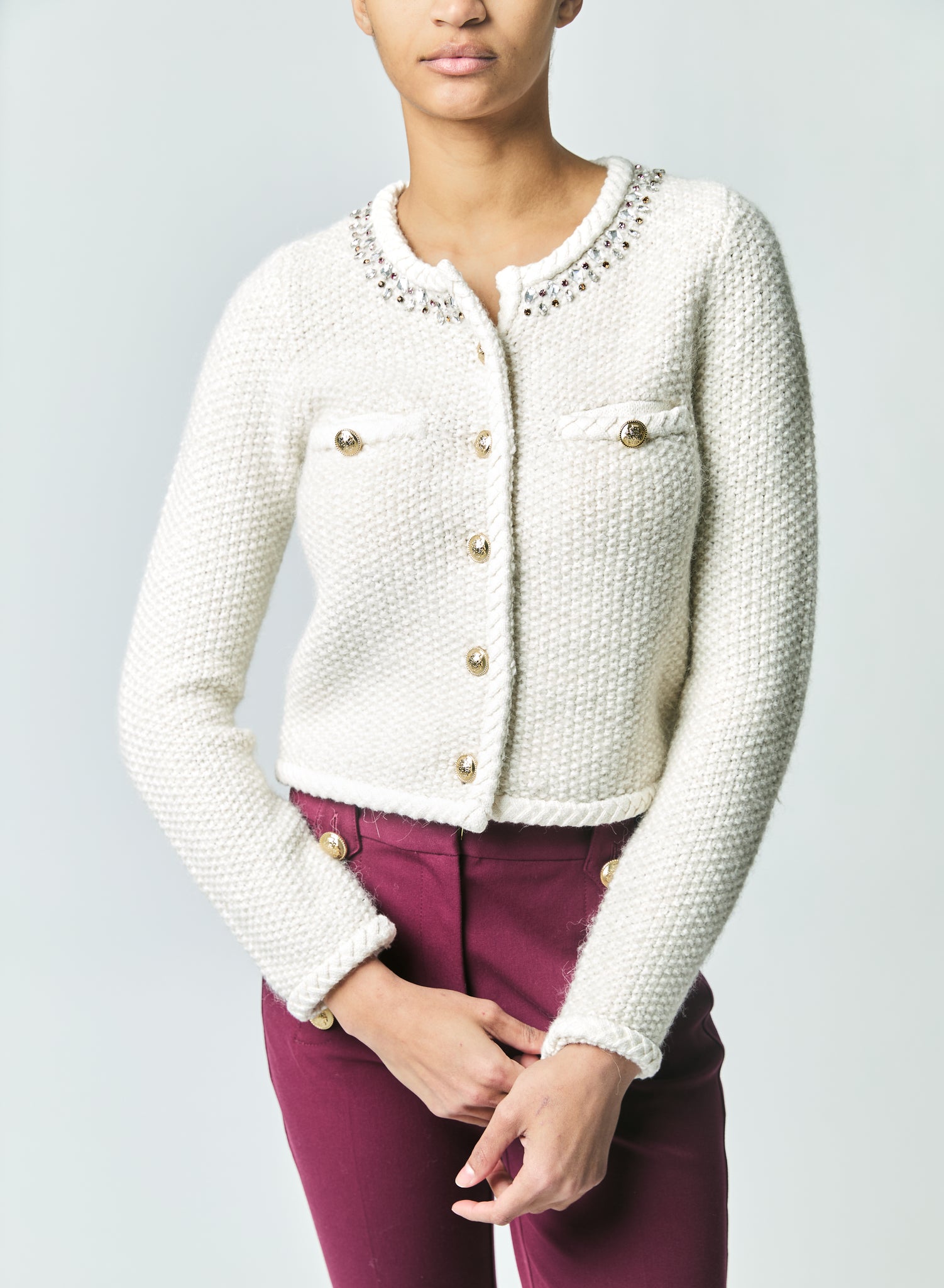CREWNECK CARDI POPCORN STITCH